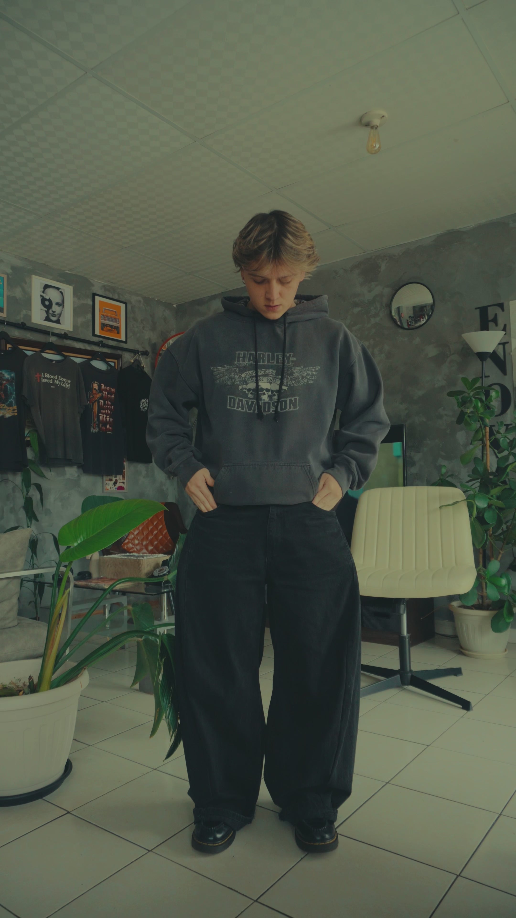 (L) VINTAGE HARLEY DAVIDSON SKULL FADED HOODIE