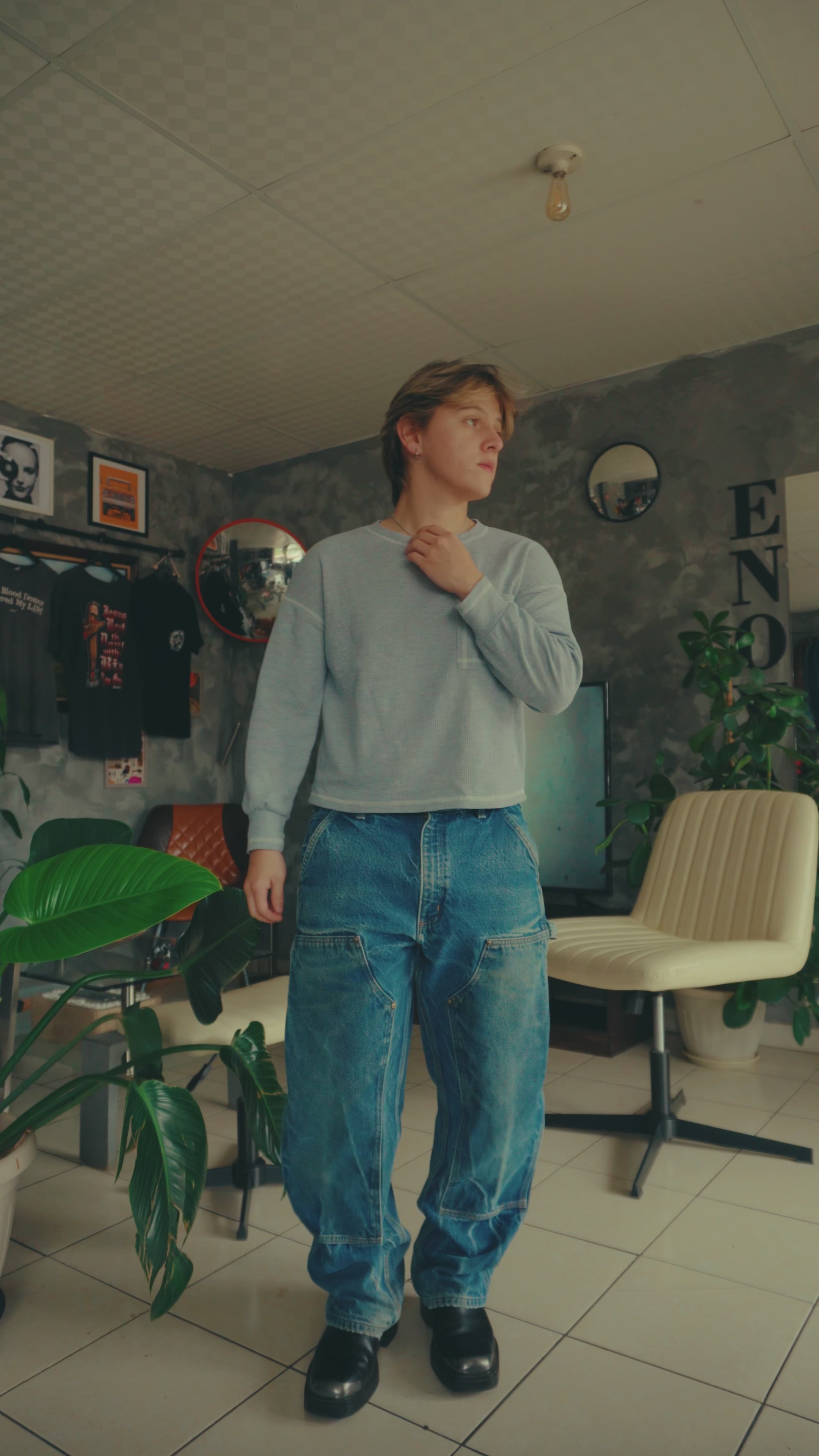 VINTAGE CARHARTT FADED BLUE DENIM DOUBLE KNEE PANTS - 34x30
